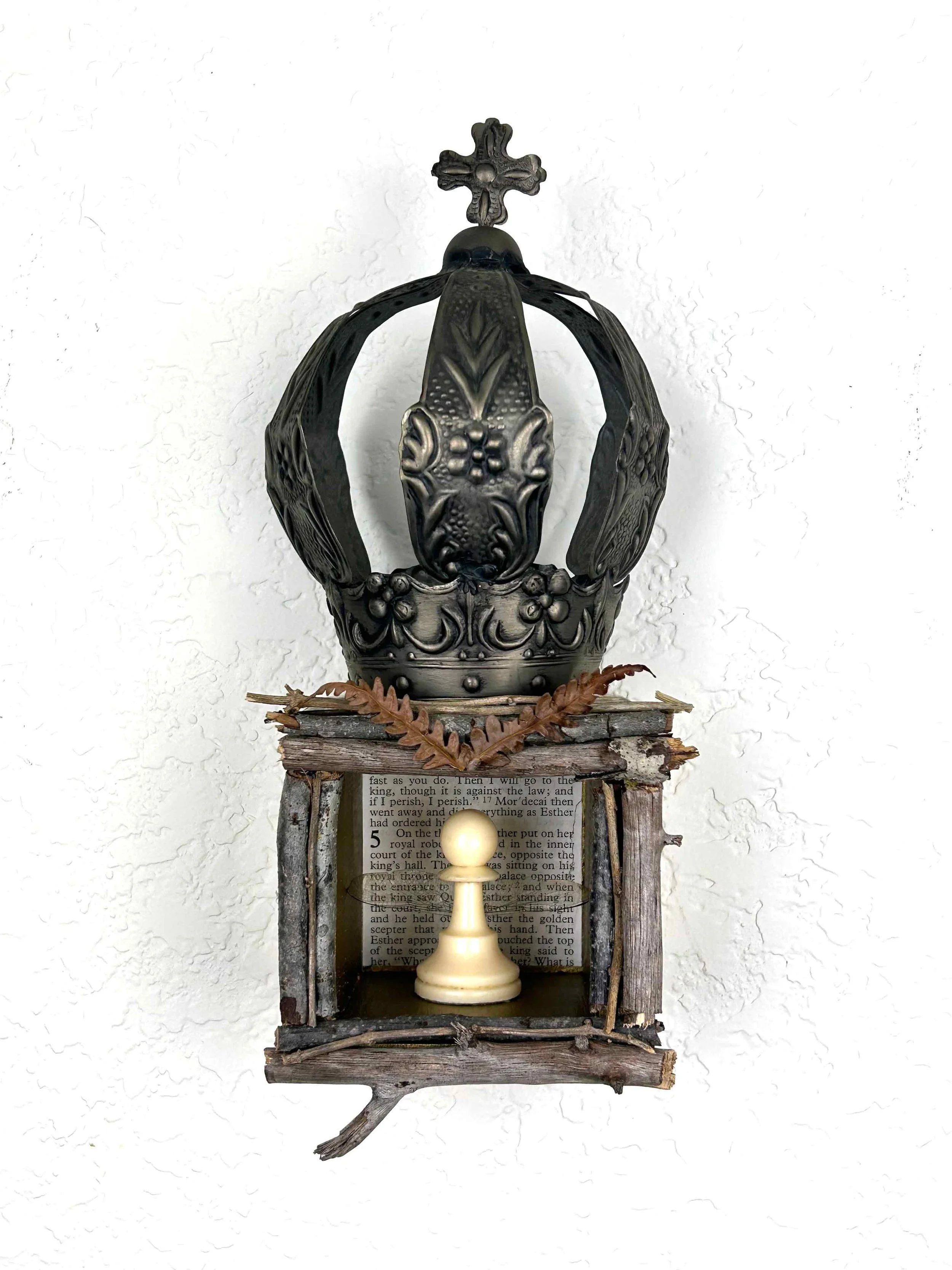 Each assemblage starts as an abstract seed of an idea, sparked by a found object or concept. It then emerges in its own unique way, following a process of internal dialogue between artist and subject matter. Unlike commercial illustration where everything is planned out, assemblages are the result of experimenting and patiently listening. The work tells me what should come next. Some boxes come together quickly. Others sit on the shelf for weeks, waiting for a solution to be discovered that will “complete” them. Symbolism permeates each piece whether intentionally added or not, as a means of exploring thoughts visually.