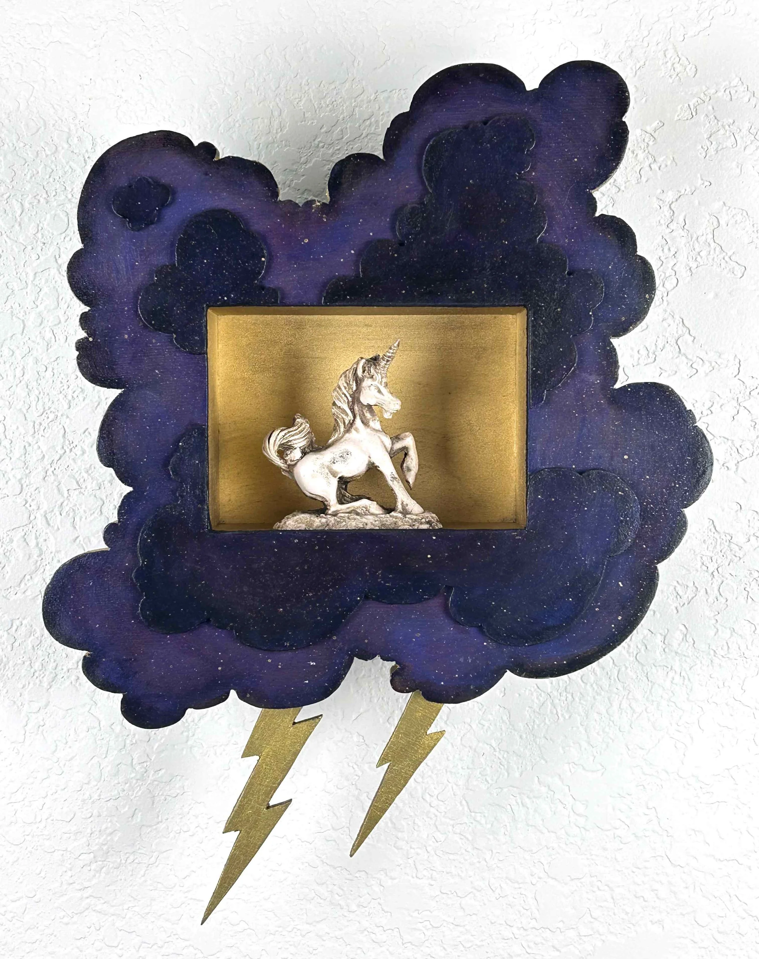 My ongoing fascination with shadow boxes and museum dioramas led me to develop my own “curiosity boxes”. These assemblages emerged from a desire to simply play and explore different media. As a commercial illustrator and art professor by day, my regular artmaking process adheres to strict guidelines and formalities. Making boxes is an alternative outlet for creativity, where my subconscious can work freely without any rules.